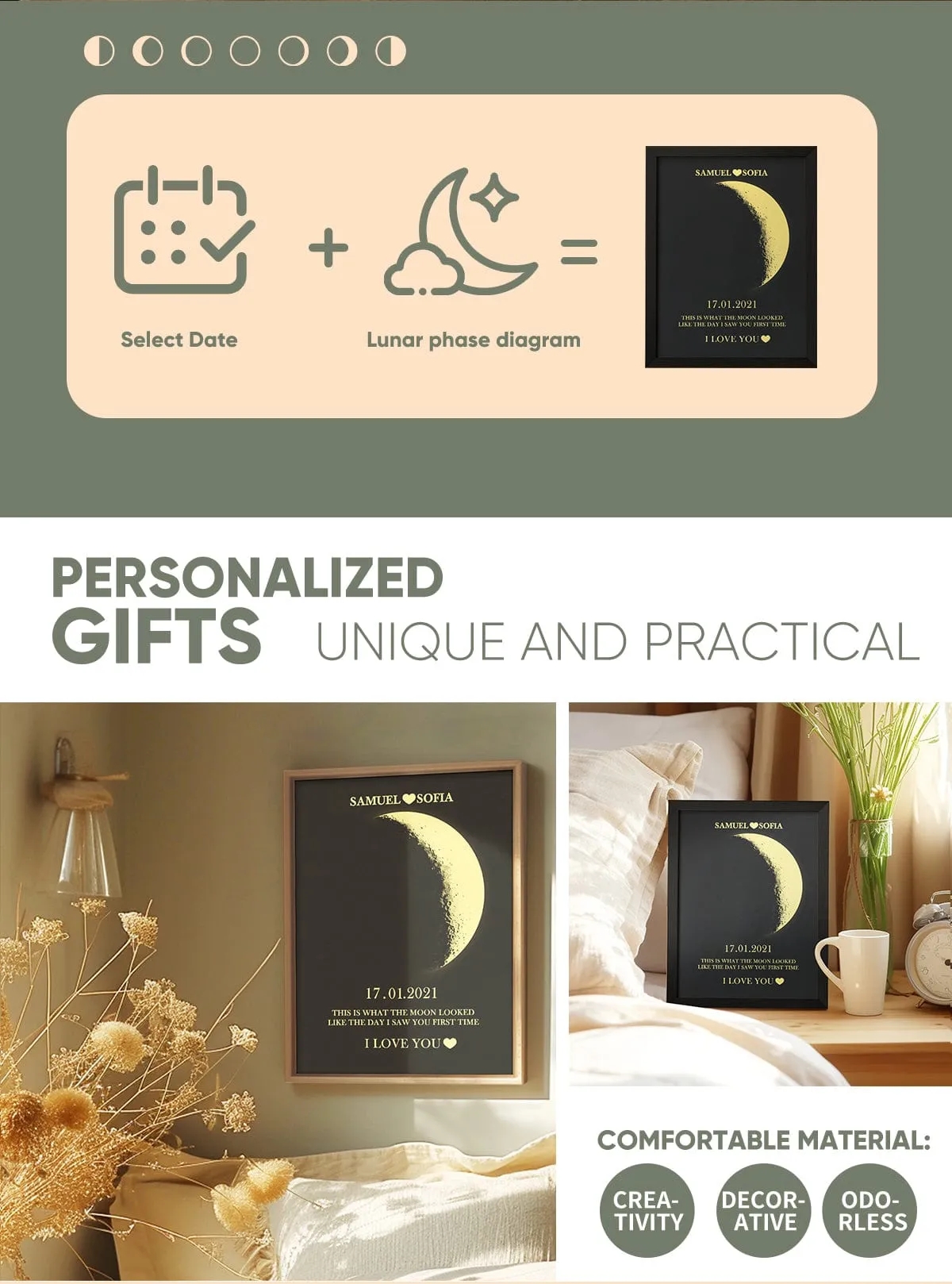 Custom Mom Moon Phase Print Family Frame Birthday Gift For Mom Mother's Day Gifts