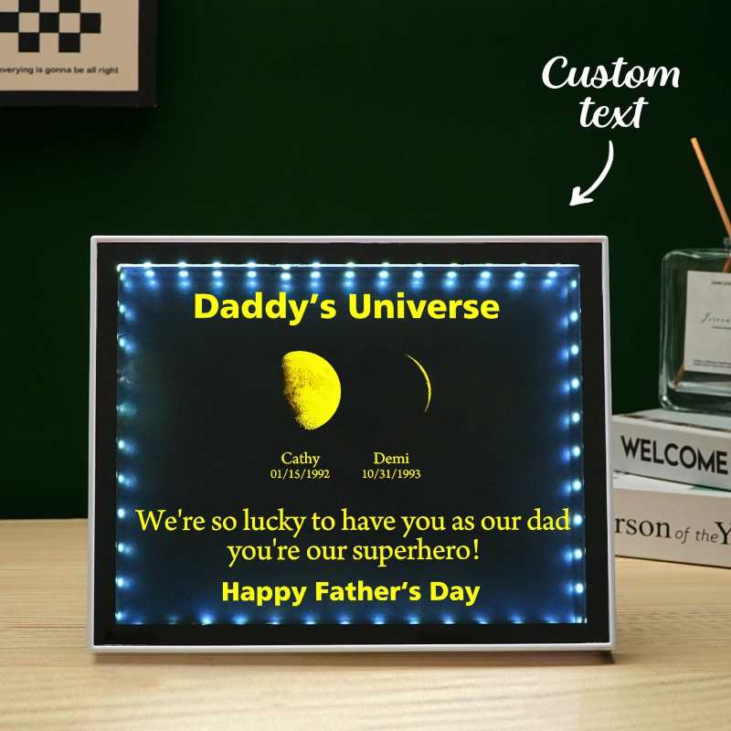 Custom Moon Phase Mirror Night Light Family Frame Dad's Universe Moon Lamp Unique Birthday Gift For Dad Father's Day Gifts