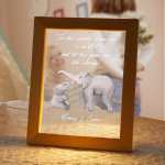 Your name is engraved onto a clear acrylic slide which slots into the LED light base. At the bottom of each base, there is a strip of LED lights that illuminate the slide and makes the engraved name glow. The wooden bases and frame are fitted with a single colour LED which gives off a warm glow and can be controlled by a dimmer switch on the power lead. The plastic base is fitted with multi-coloured LEDs and you can select a particular colour or set the base to cycle through each colour whilst it is switched on.