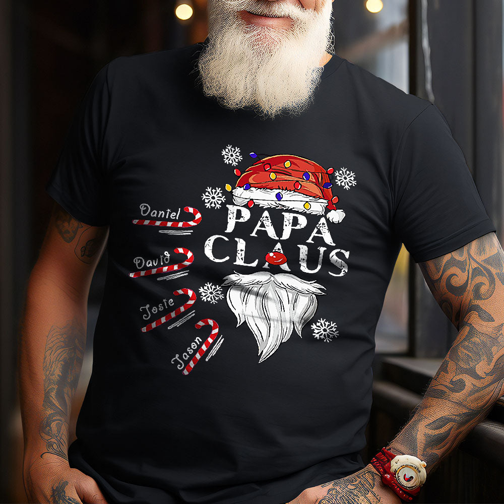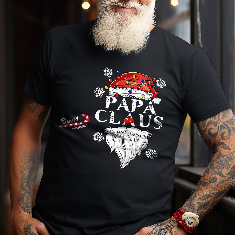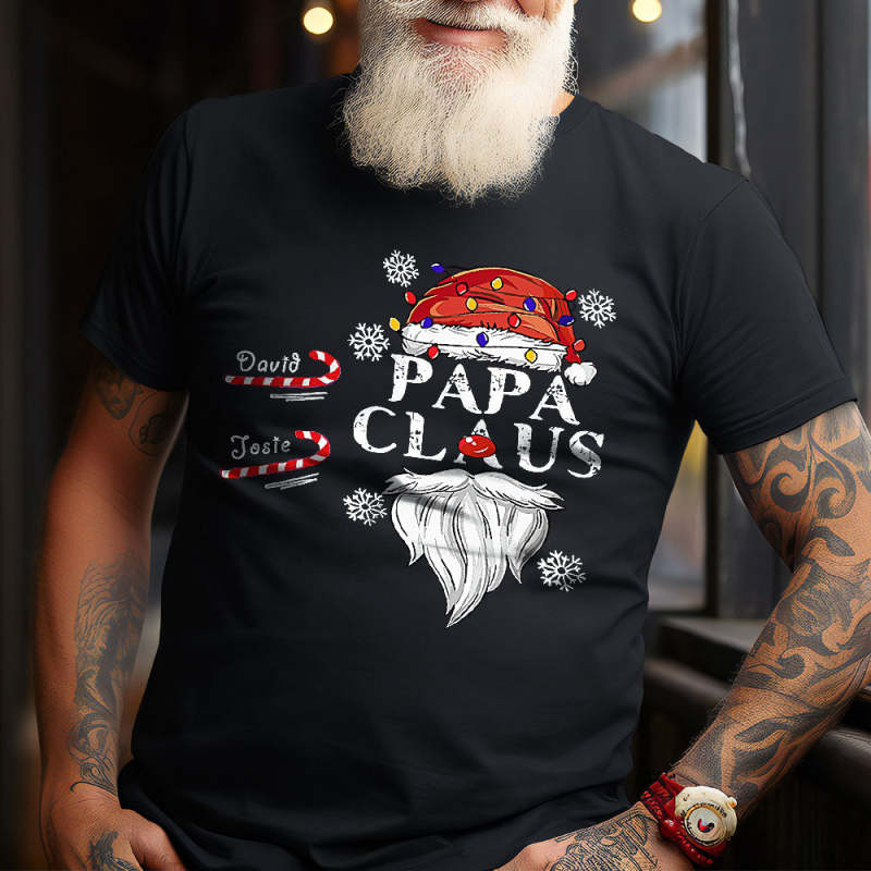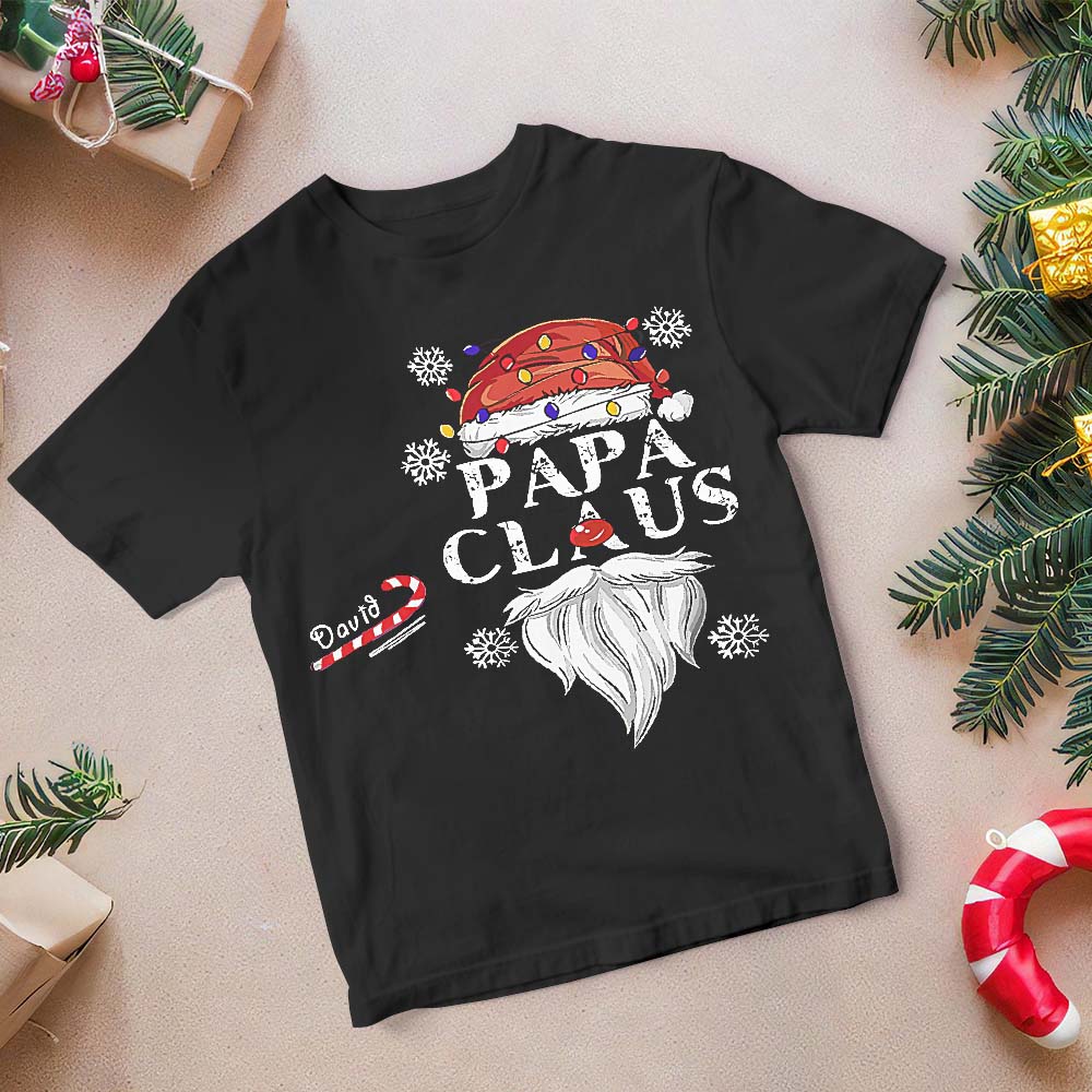 Custom Name T-shirt Papa Claus with Candy Cane Christmas T-Shirt Gift For Dad