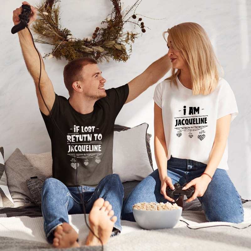 - You can enter your name to customize this couple's t-shirt. A cool and stylish fashion essential, that you will want to wear every day. Our design team works hard to get a perfect production. A gift for you and your valentine!