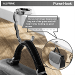 Has a rubber non-slip backing and unfolds to hang your purse on a table edge.
