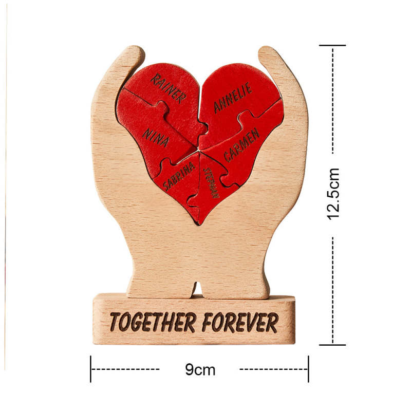 Each heart puzzle piece can be engraved with a family member's name. Each uniquely shaped piece of these personalized wooden puzzle bears brings a special family member and their love to life, making them the perfect surprise gift for any celebration.