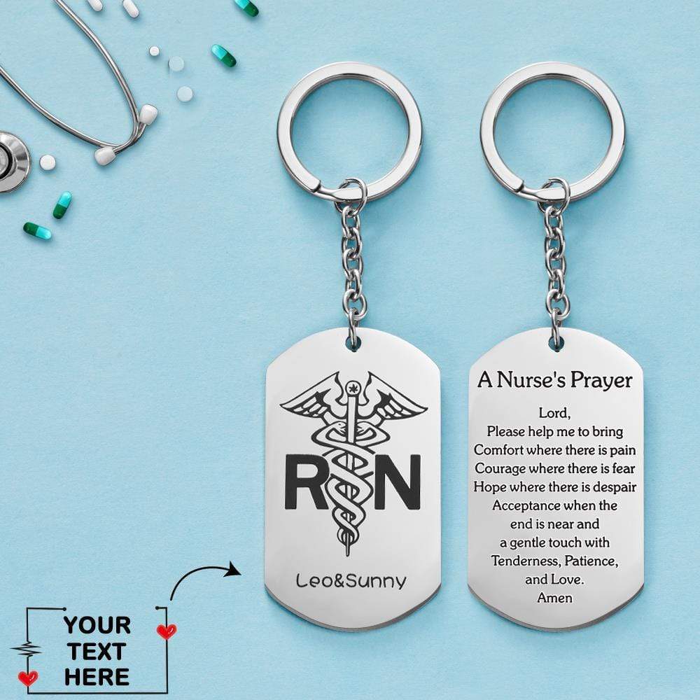 Nurse Graduation Gifts Name Engraved Keychain - RN Nurses Prayer