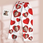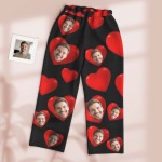 Custom Pajamas Pants Dark Tone with Embedded Photo Hearts Adjustable Waistband Multiple Color Options Valentine's Day Gift