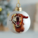 Enhance your holiday decor with our exquisite collection of Artfully Printed Hand-Painted Watercolor-Style Pet Portrait Ornaments. These charming ornaments capture the essence of your beloved pets with precision and style. They are round, white, thick durable ceramic, topped with a rustic cap and gold string. Baubles measure around 5.7cm(2.3 inches). You can also add personalized text to the ornament at no extra charge, such as your pet's name and the year.