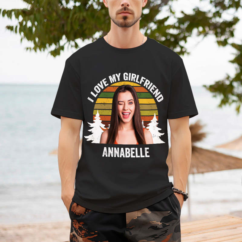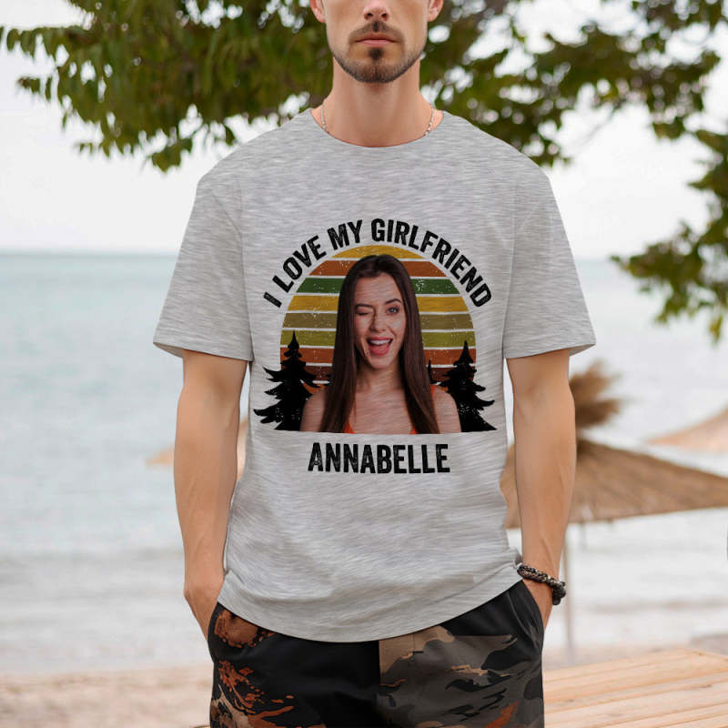 Custom Photo and Text Retro Sunset T-shirt Personalized Vintage Tee