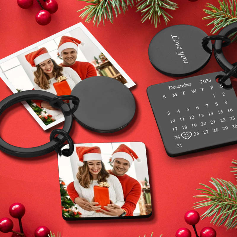 Custom Photo Calendar Keychain Personalized Stainless Steel Keychain Christmas Gifts for Lover