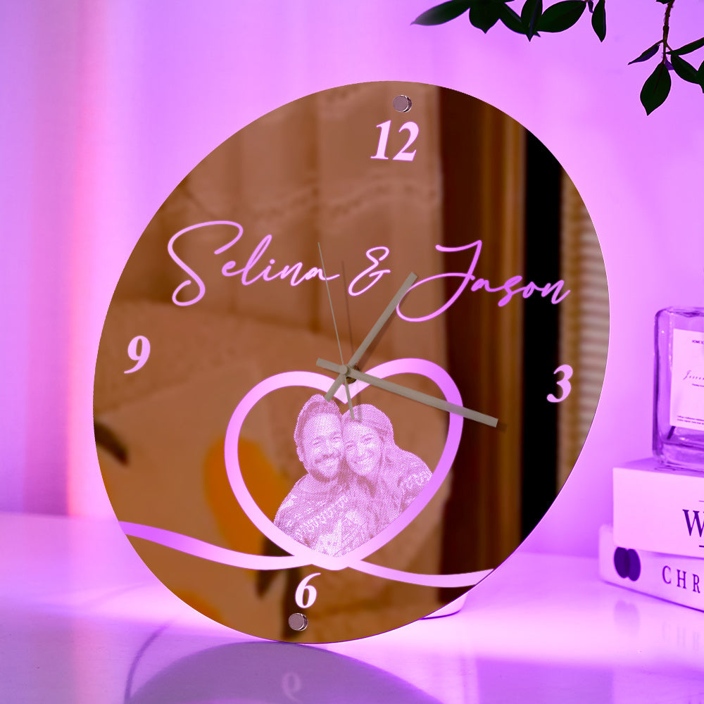 Custom Photo Clock Personalized Name Mirror Light Wall Decor