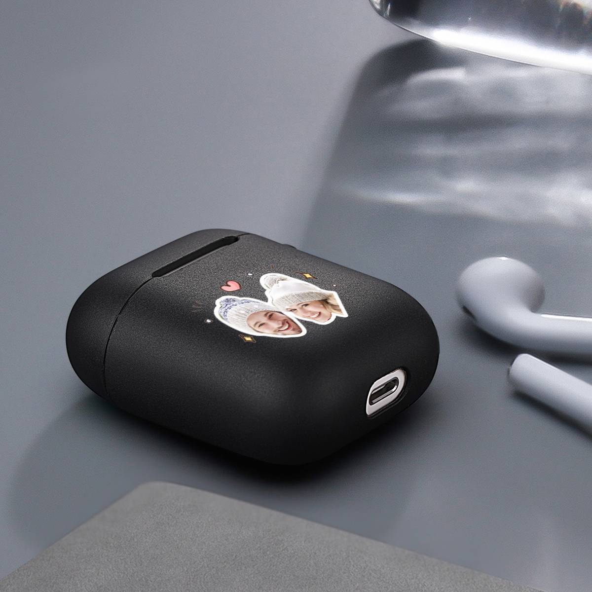 Custom Photo Earphone Case for AirPods Couples Keepsake Gift Black - Avatar