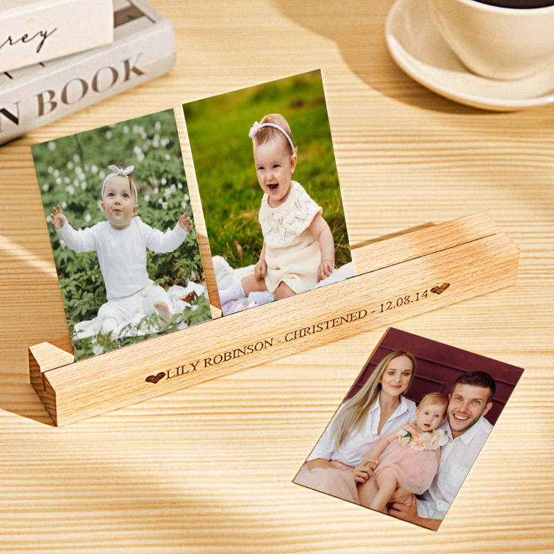 Custom Photo Engraved Ornaments Christening Heart Photo Block