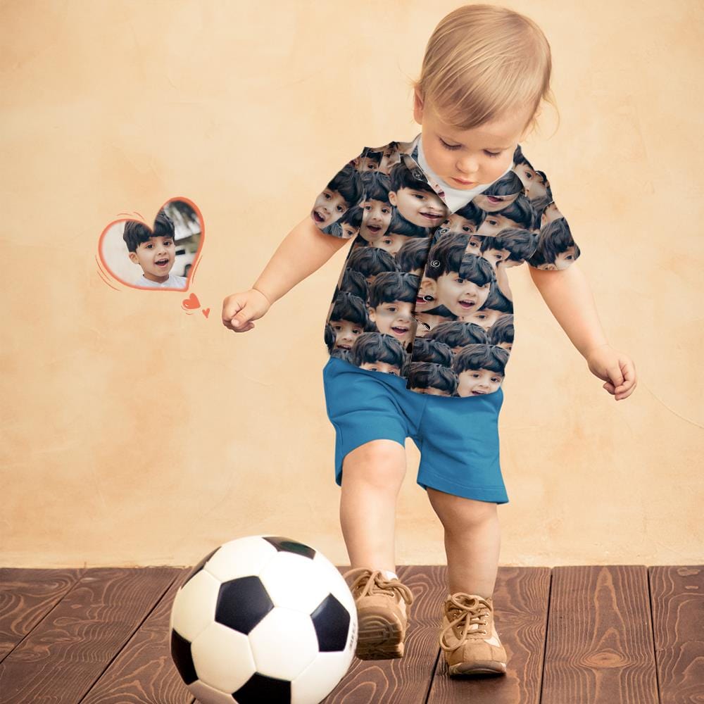 Custom Photo Hawaiian Shirt Parent-child Wears Personalised Face Hawaiian Shirt Gift Face Mash