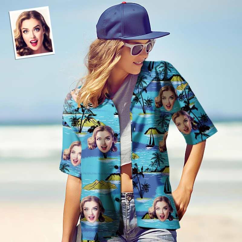 Custom Photo Hawaiian Shirt Parent-child Wears Personalised Face Hawaiian Shirt Gift Vice City