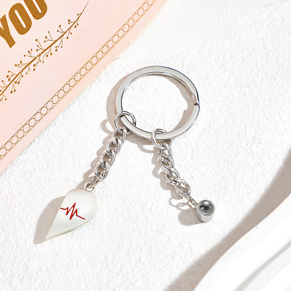 Custom Photo Heart Keychains Couple Projection Photo Magnetic Heartbeat Keyrings