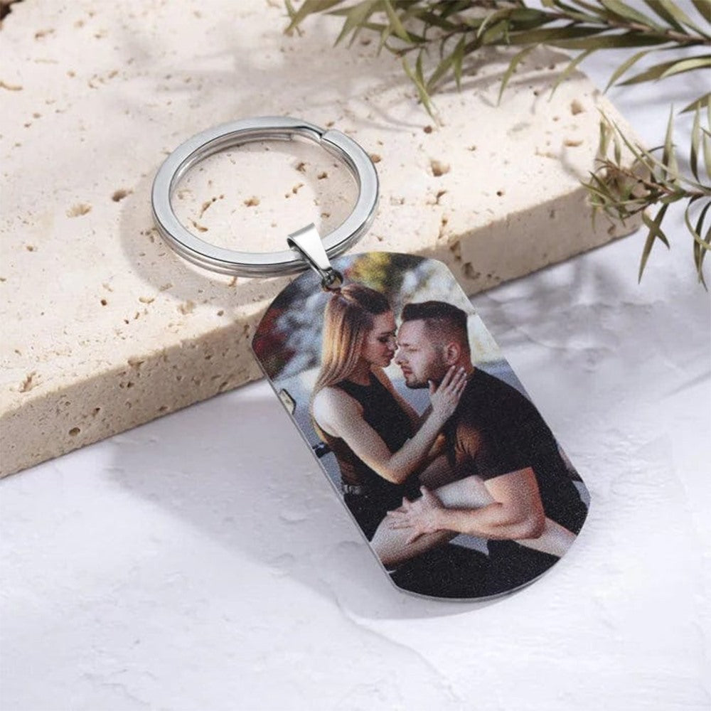Photo Engraved Tag Key Chain with Engraving Black for Couple. Personalized keychain is a must for everyone. It's a lovely way to get decked out in a unique way that is literally customized for the wearer. Giftlab has a ton of customized jewelry options that are reasonably priced and make for great gifts for all sorts of occasions like birthdays, holidays, anniversaries, just because, and Mother's Day. Those who love retro-style pieces must snatch up a nameplate necklace. There are a variety of styles to choose from with different fonts and metals. To capture a special moment, Giftlab has picture jewelry that can also be engraved to make it extra special. Add in a snapshot of everything from a sibling or child, to a partner or pet to keep them extra close at all times.