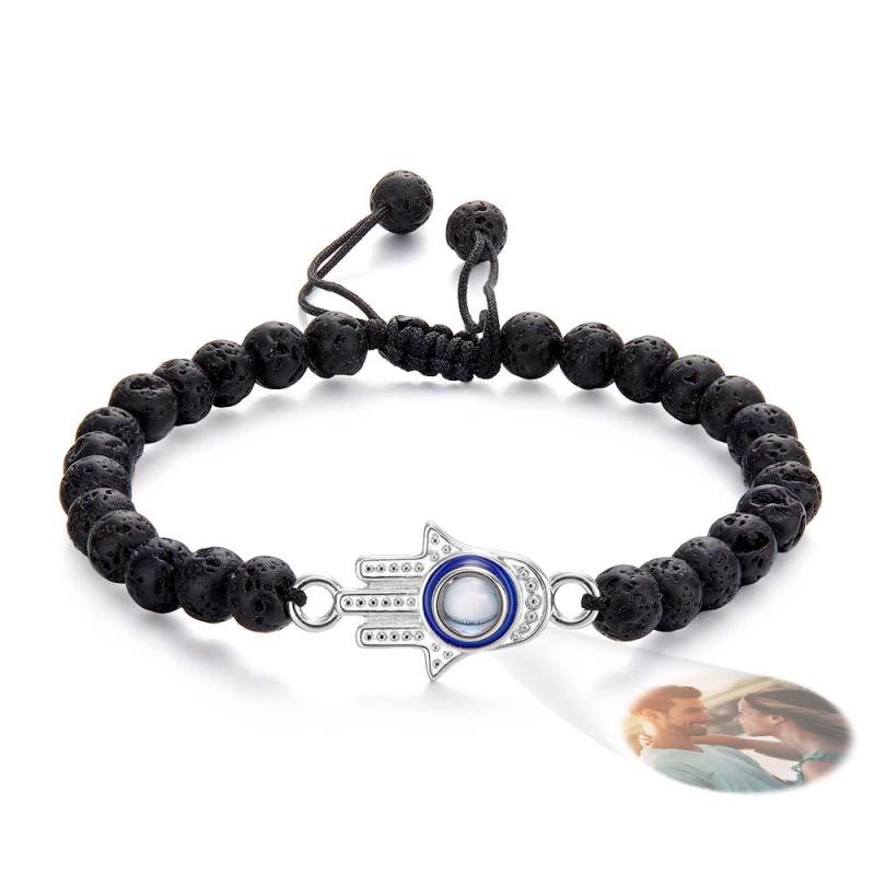 Custom Photo Projection Beaded Bracelet Hamsa Evil Eye Men's Amulet Bracelet for Him