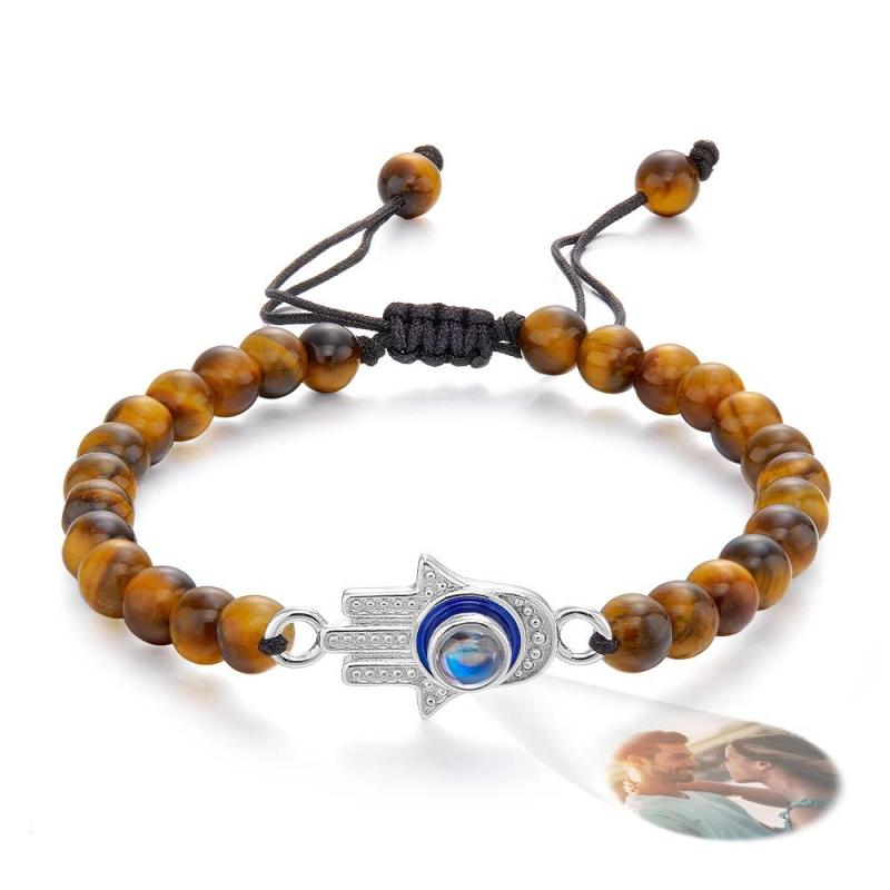 Custom Photo Projection Bracelet Tiger Eye Beaded Hamsa Evil Eye Men's Amulet Bracelet for Him
