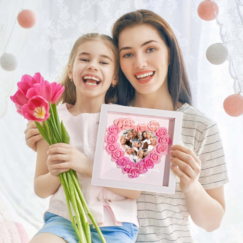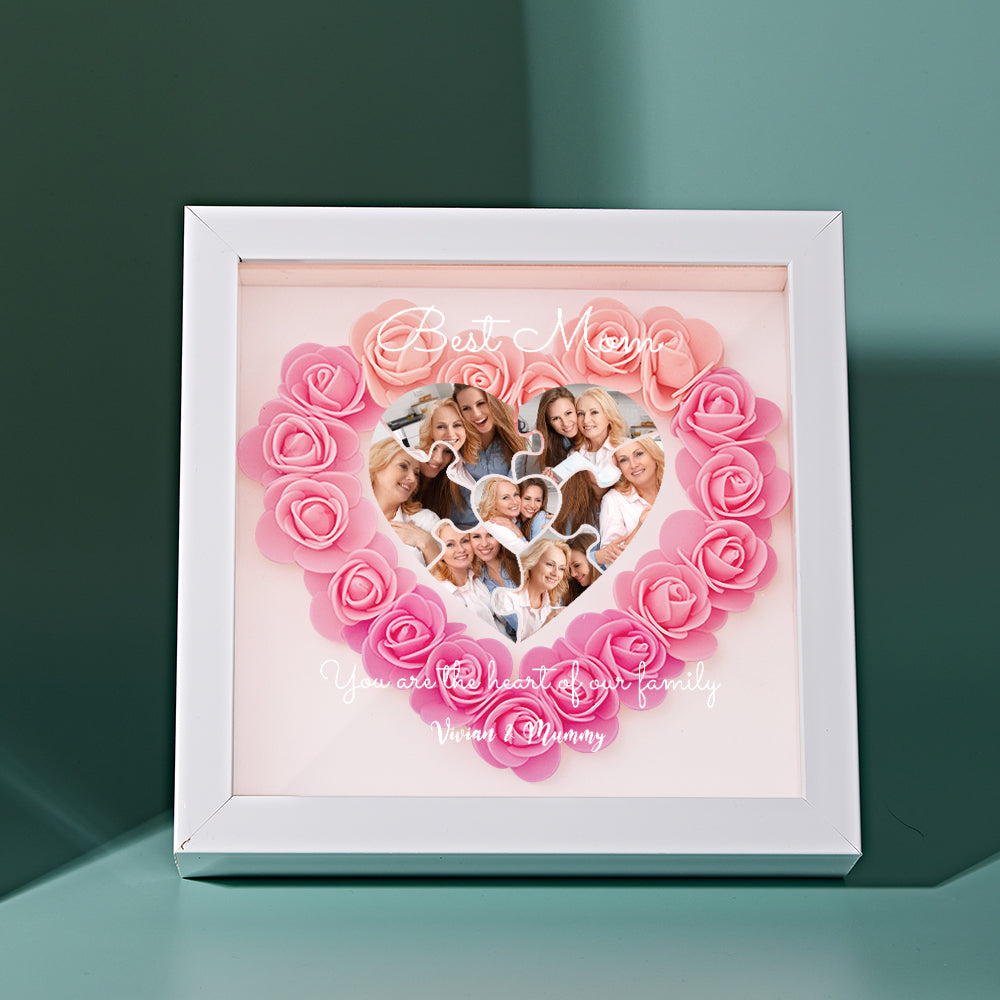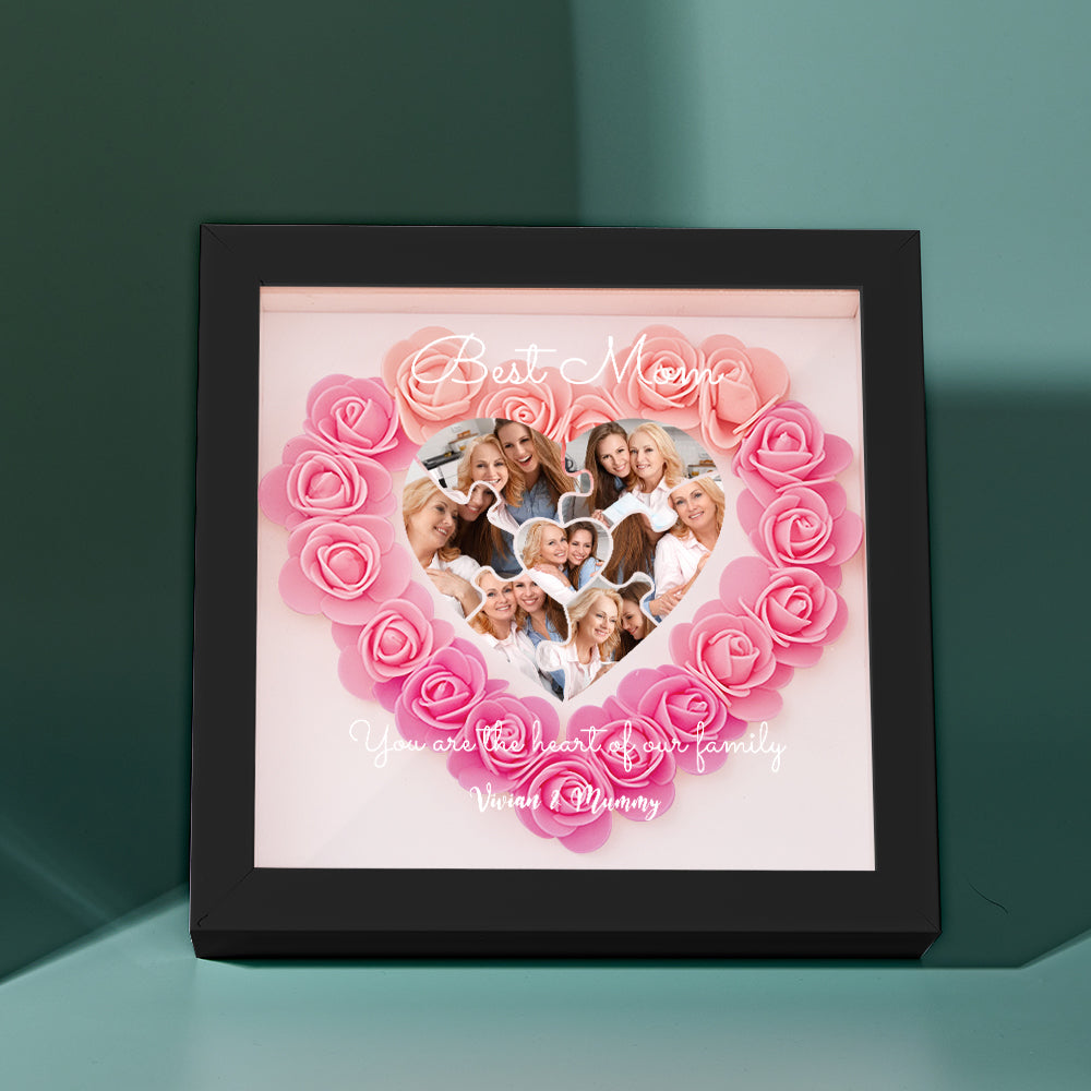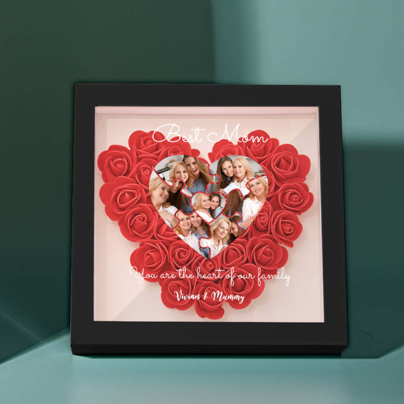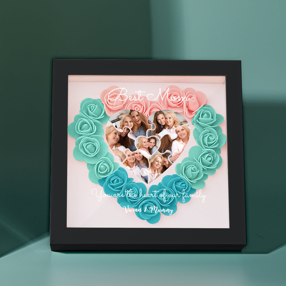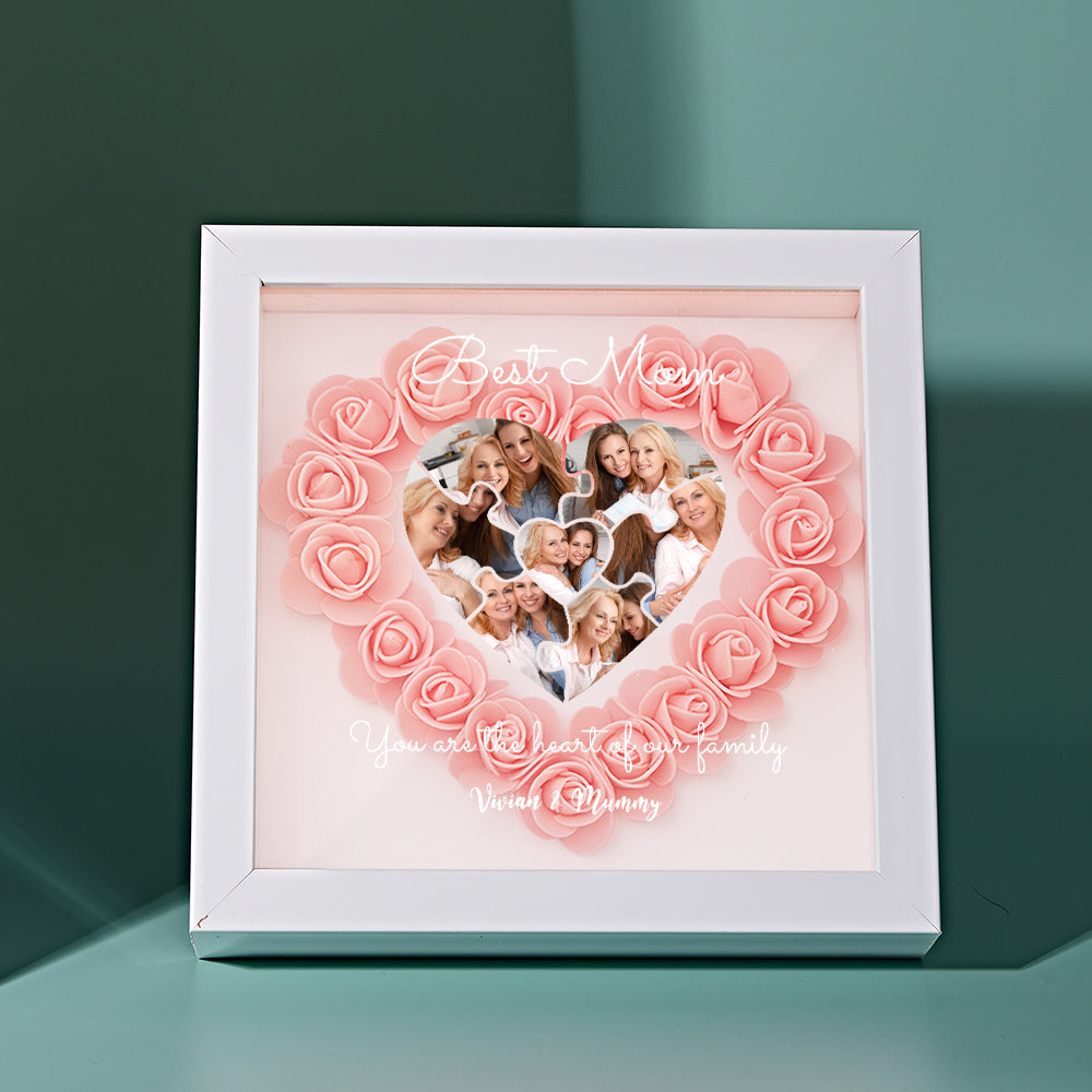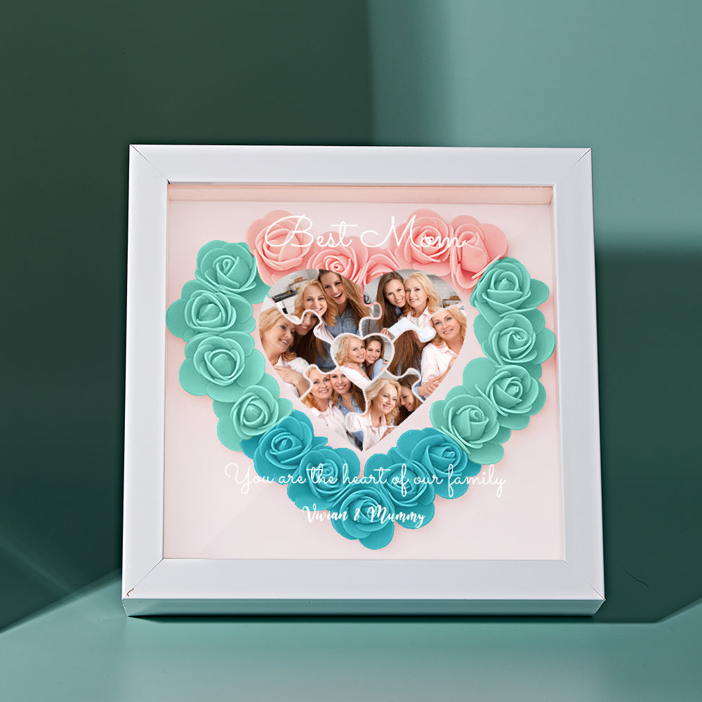 Custom Photo Puzzle Flower Shadow Box Personalized Flower Shadowbox Frame Mother's Day Gift