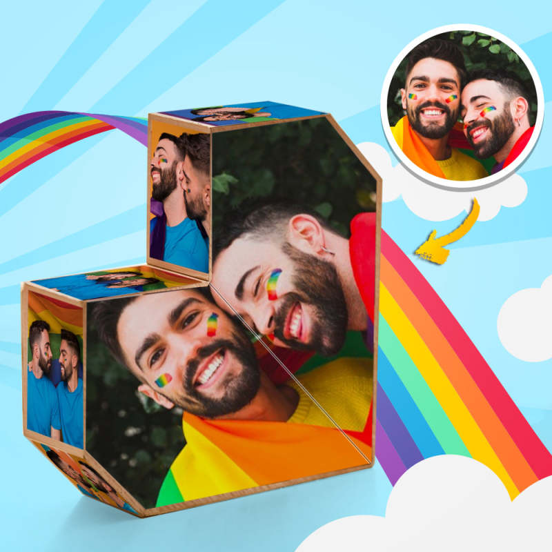 Custom Photo Rubic's Cube Wooden Cube Heart Shape Multiphoto Male Couple Pride Month Gifts for Him