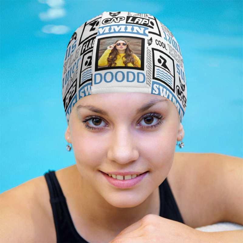 Custom funny swimming caps as a good gift idea for birthdays, anniversaries, Valentine's Day, and any holidays. She/He will be happy and surprised when received the unique customizable swimming caps.