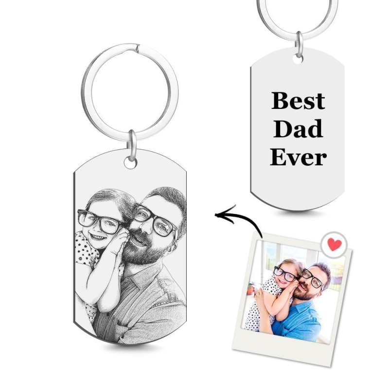 Custom Photo Tag Keychain Best Dad Ever Gifts for Daddy Photo Keychain
