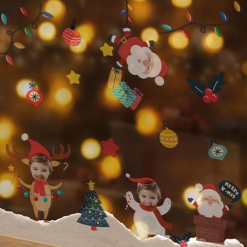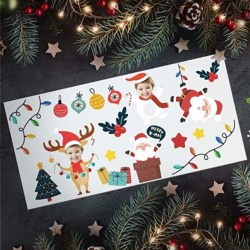 Custom Photo Transparent Wall Stickers Personalized Merry Xmas Wallpaper Christmas Gift