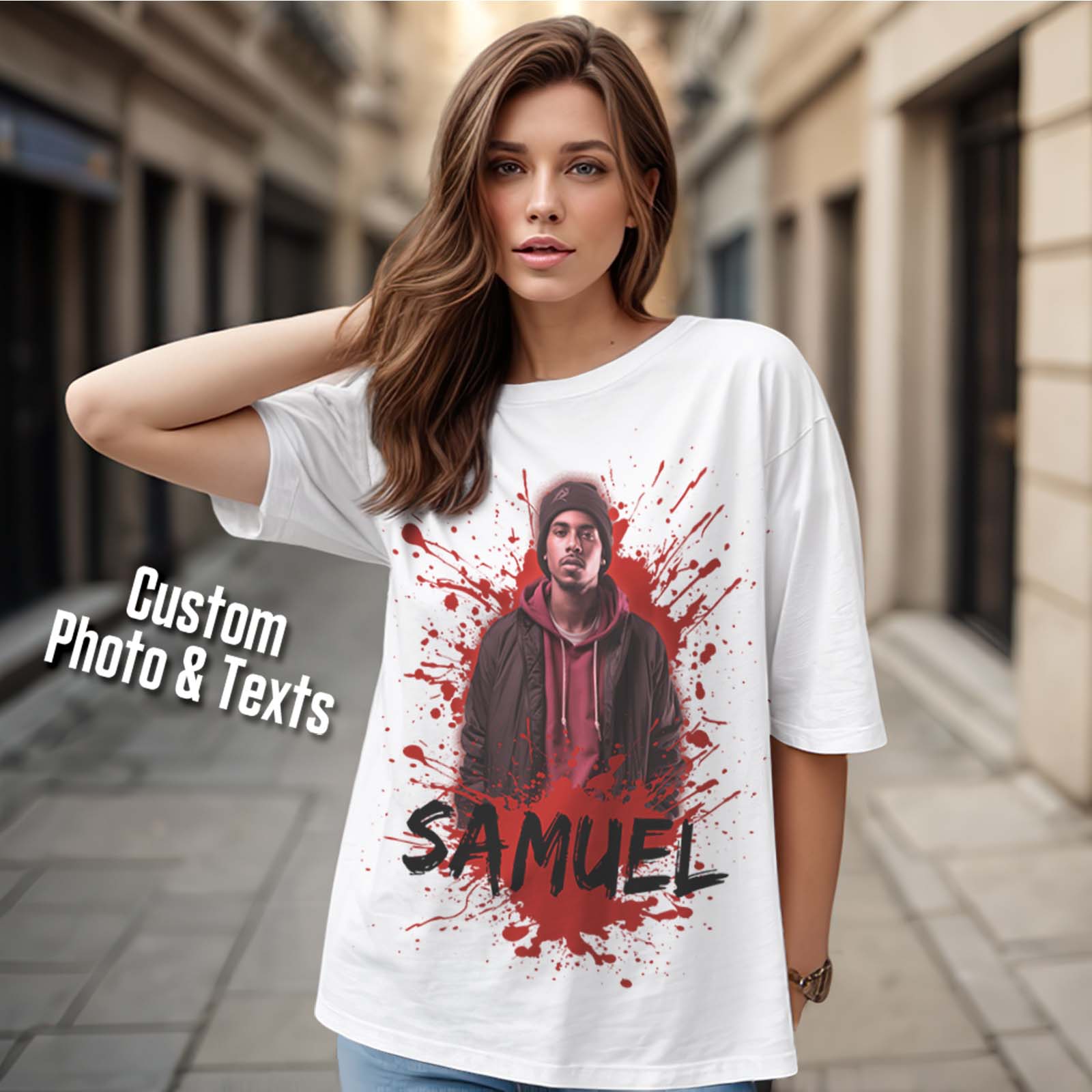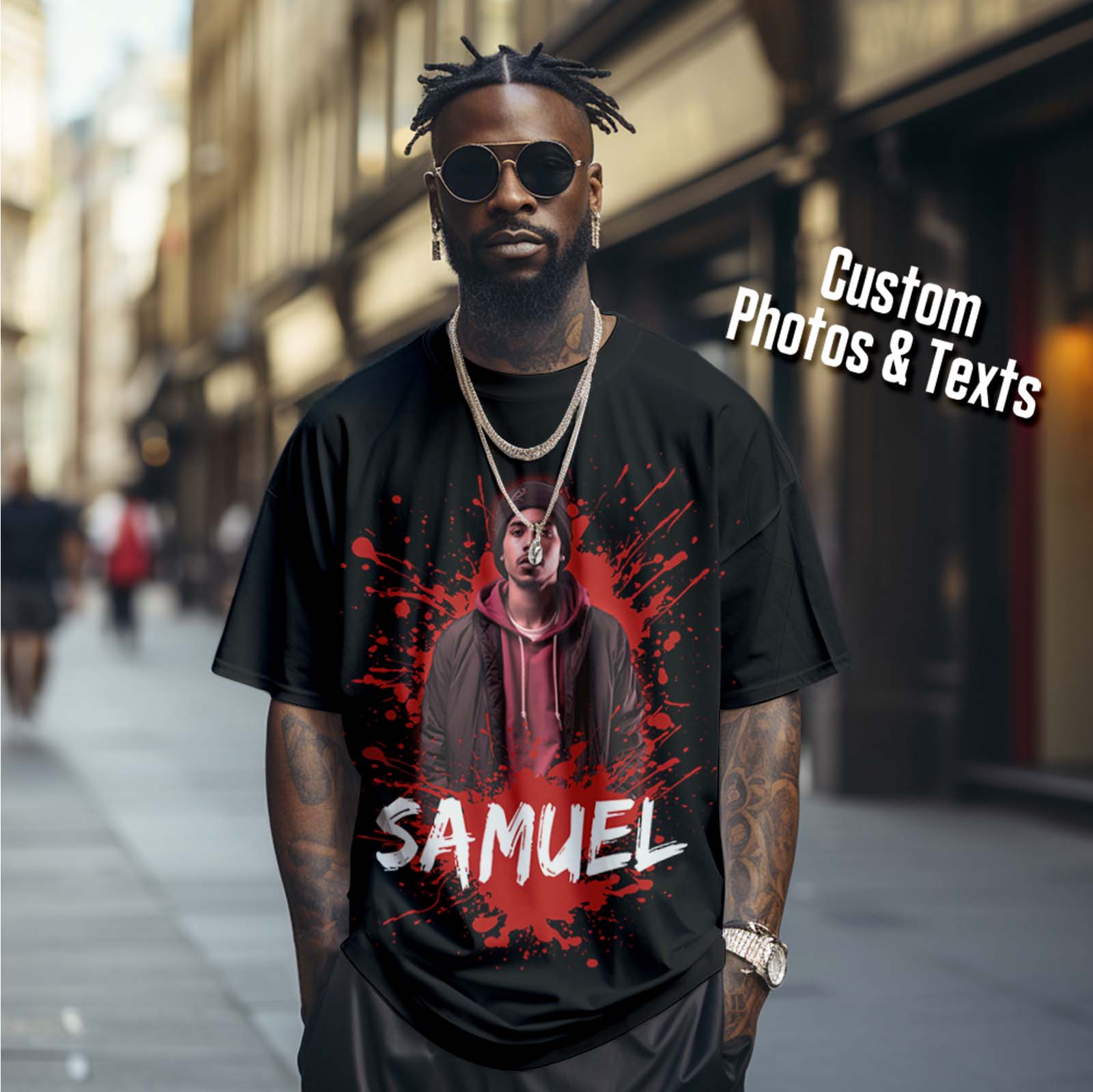 Custom Photo Vintage T-shirt Personalized American Hip-hop Rap Tee with Name