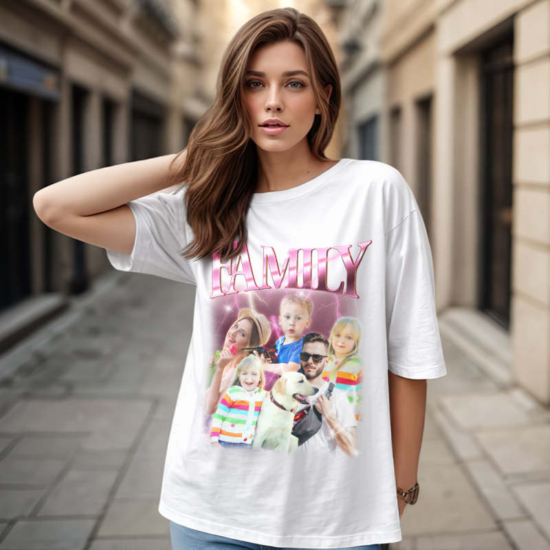 Custom Photo Vintage Tee Personalized Name T-shirt Family Gifts