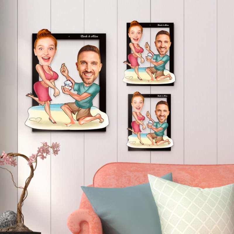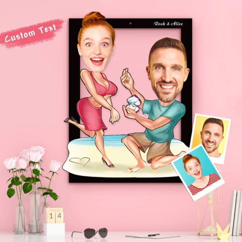 Custom Face Photo Wooden Frame Personalized Proposal On The Beach Wooden Wall Art for Valentines Gift