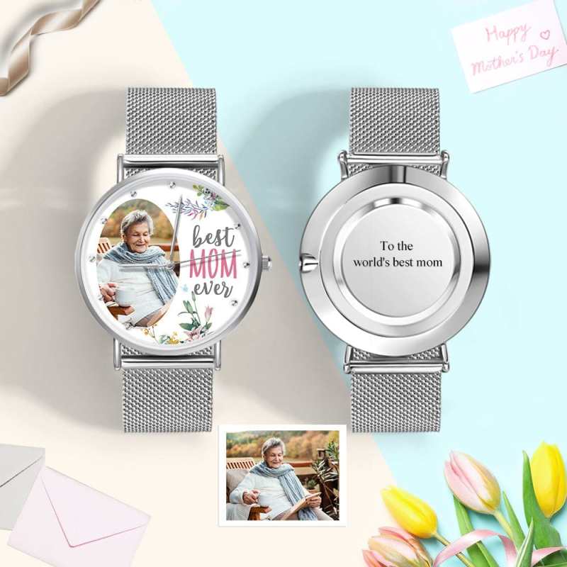 - This personalized watch will be a perfect Mother's Day gift. With an outer casing made from premium alloy, this classic timepiece is precision powered by Japanese movement. All you need to do is pick a memory for the dial and make a gift that goes down in time.