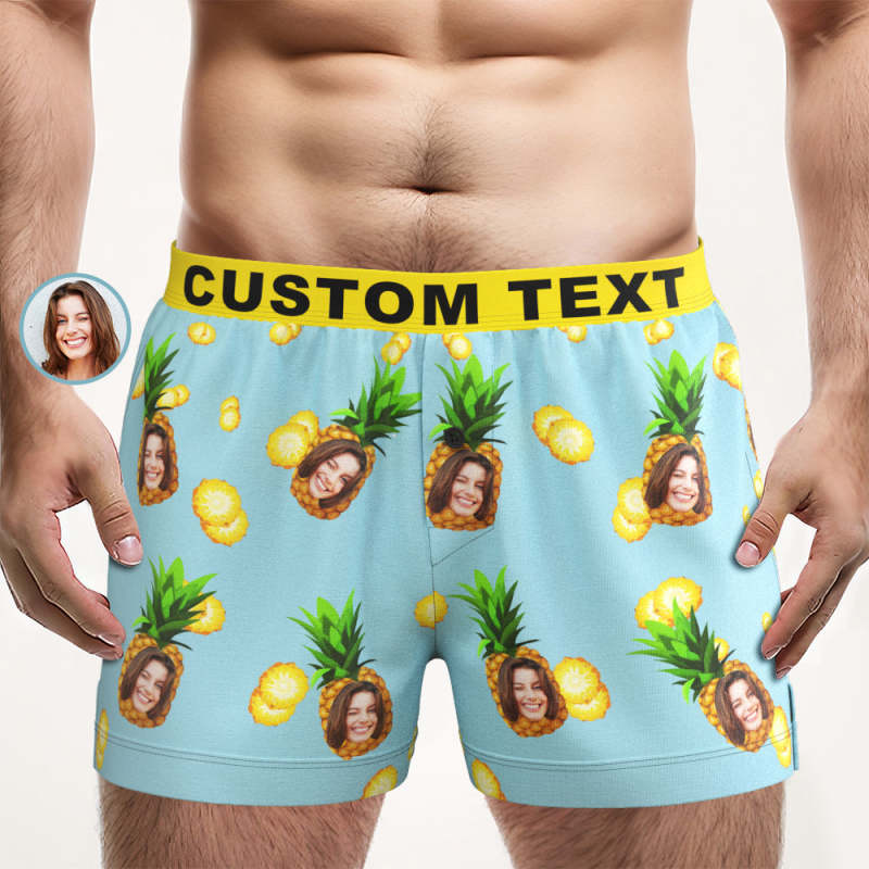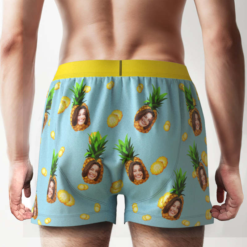 Custom Pineapple Boxer Shorts Personalized Waistband Rainbow Gifts for Him