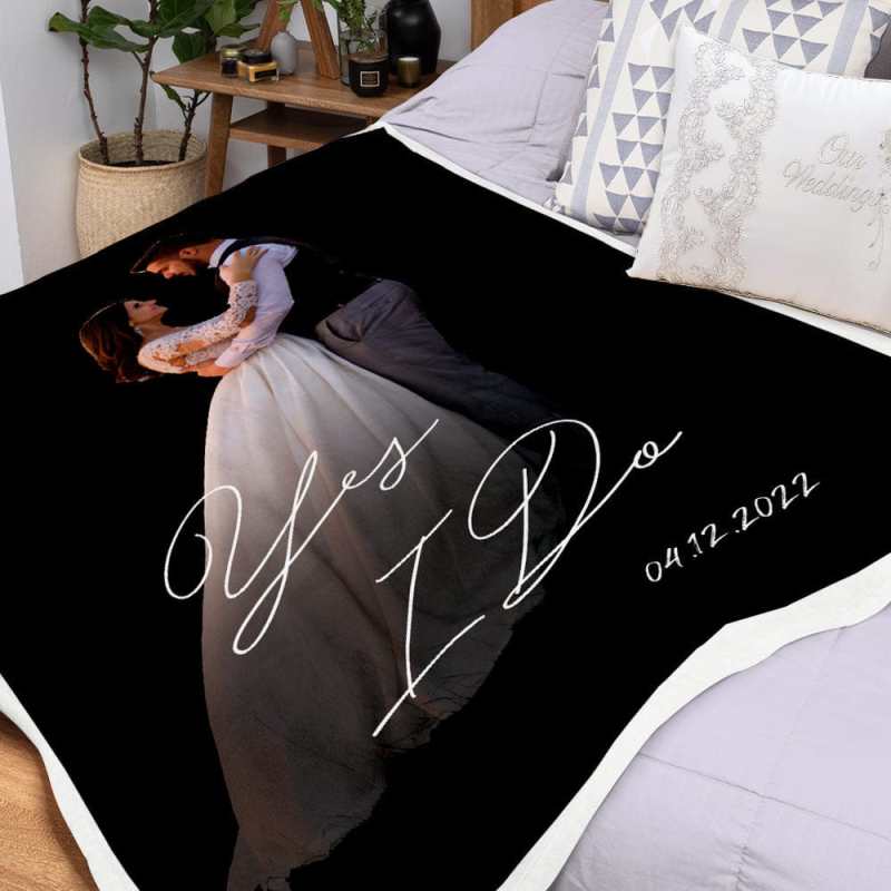 This wedding-themed blanket presents your wedding photos in another way, allowing you to customize the name, date or photo. This blanket can be used as a wedding gift or an anniversary gift. It's a very memorable gift that never goes out of style. Give it to your loved ones and the recipient will be very happy.