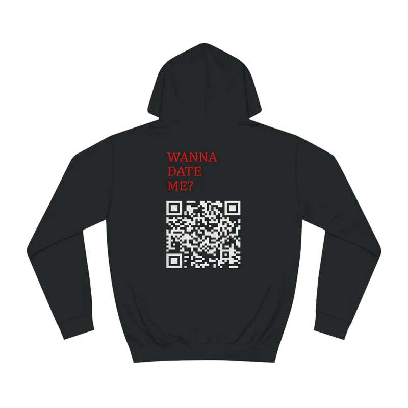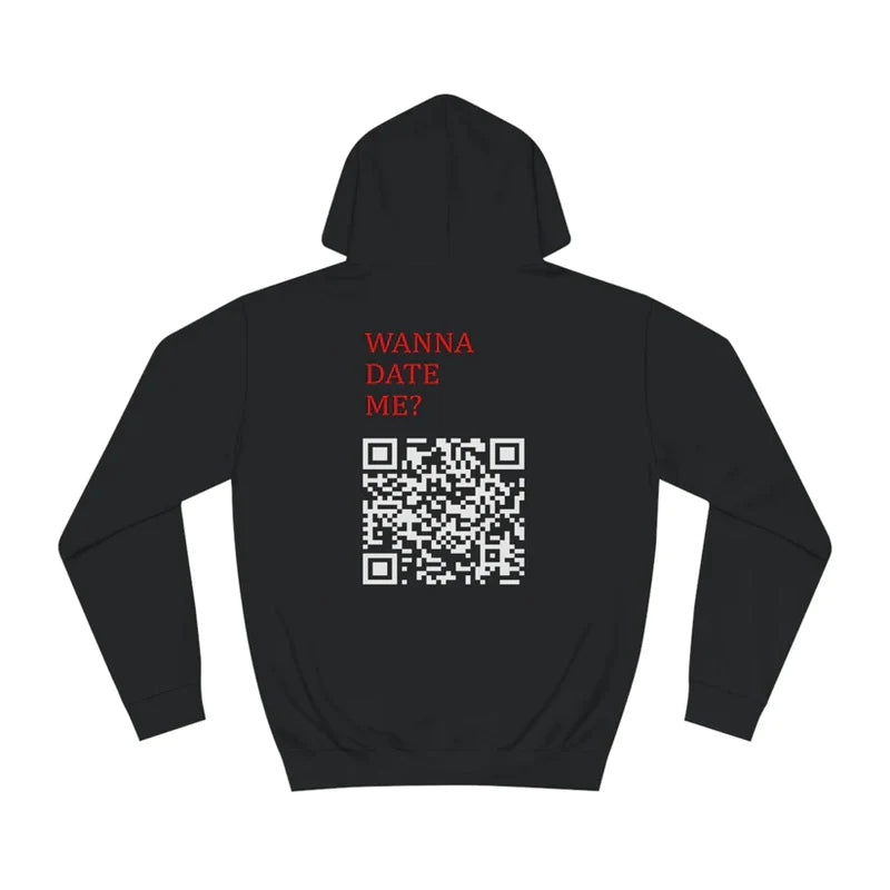 Custom QR Code Sweatshirt Personalized Social Connection Hoodie with Text WANNA DATE ME?
