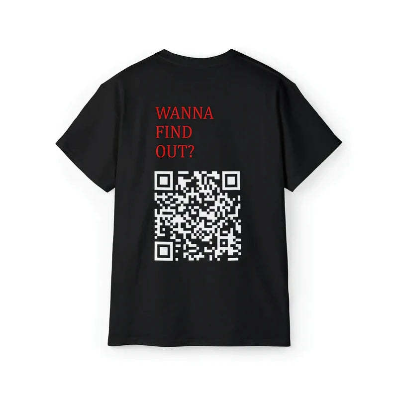 Custom QR Code T-shirt Personalized Social Connection Shirt with Text WANNA FIND OUT?