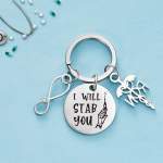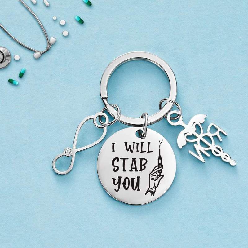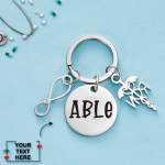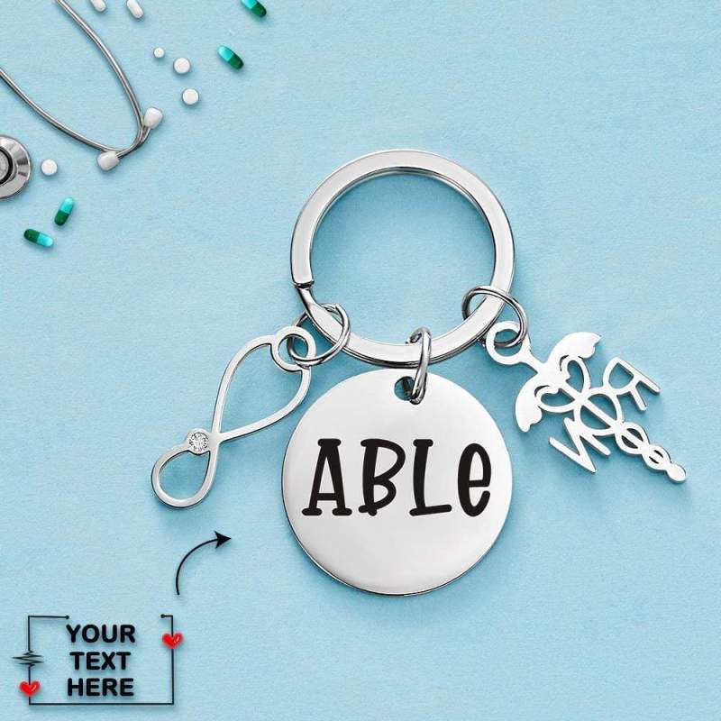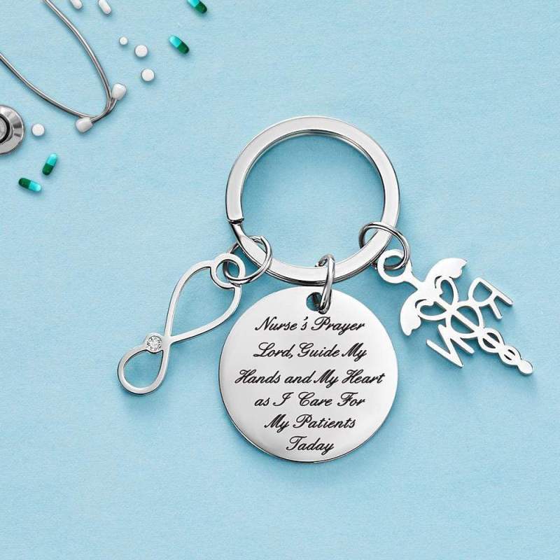 - Silver personalized nurse keychain. It makes a great gift for any nurse, including nursing students or someone who has just become an RN.