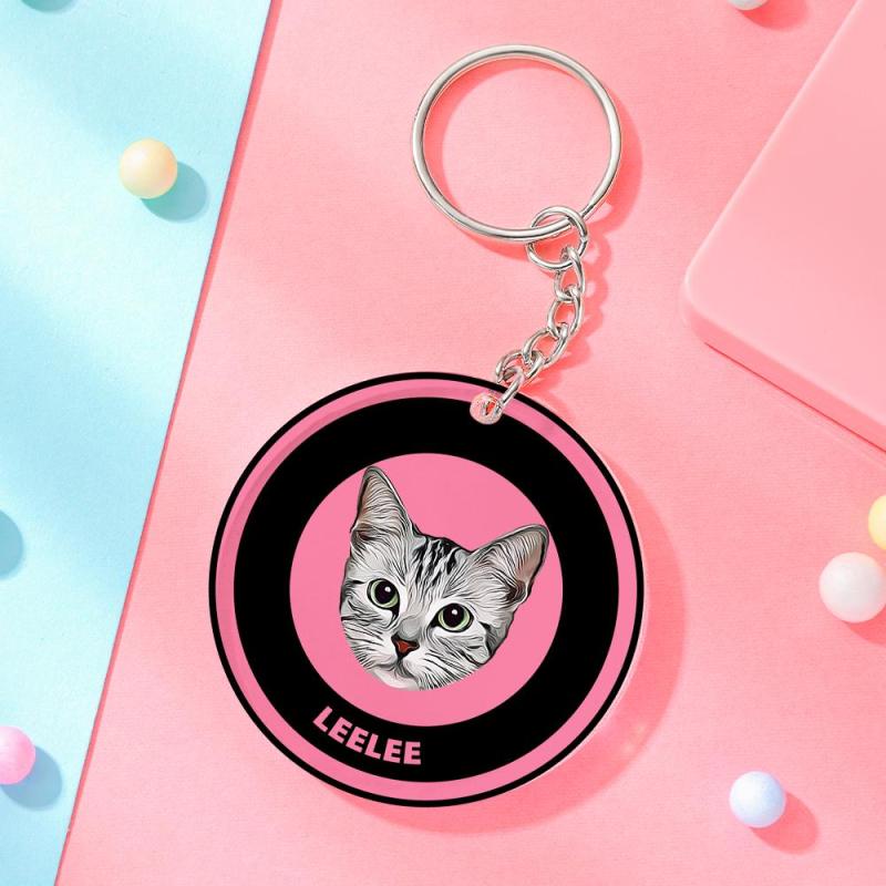 Custom Round Keychain Personalized Pet Photo with Name Keychains Gift for Pet Lover - Black & Pink
