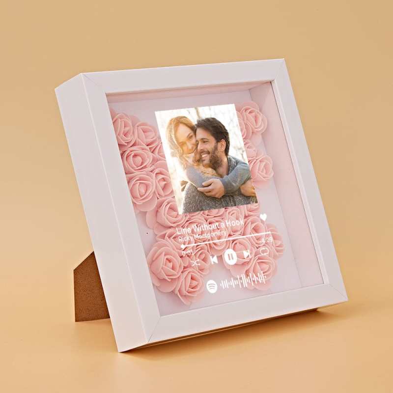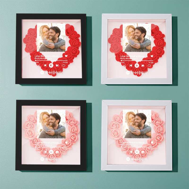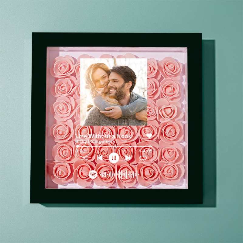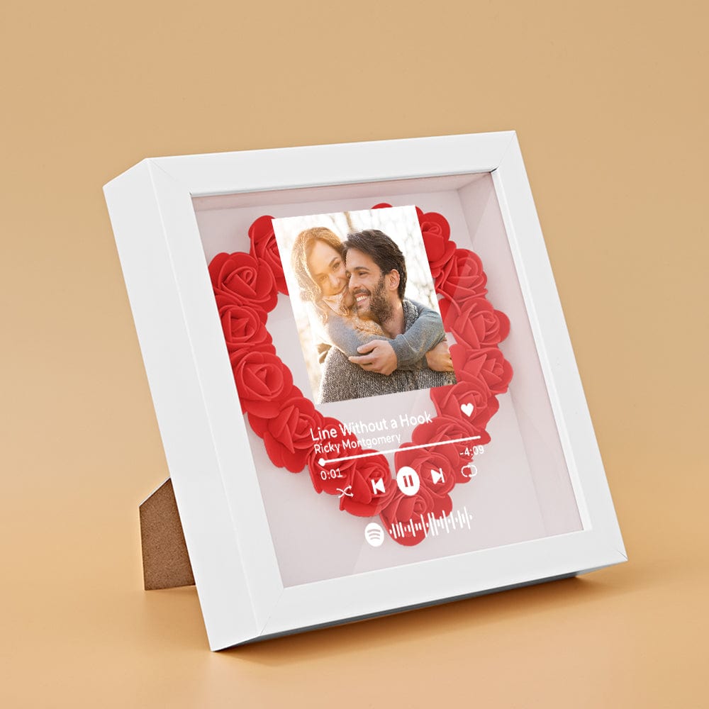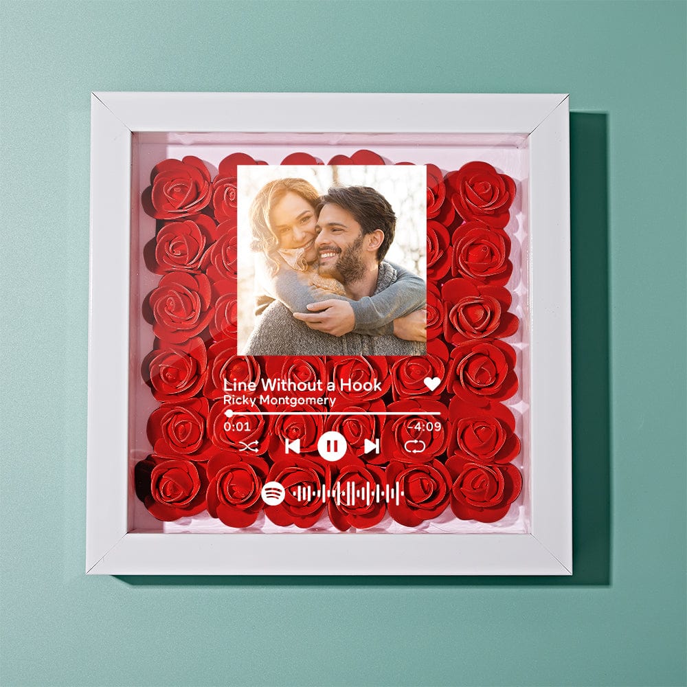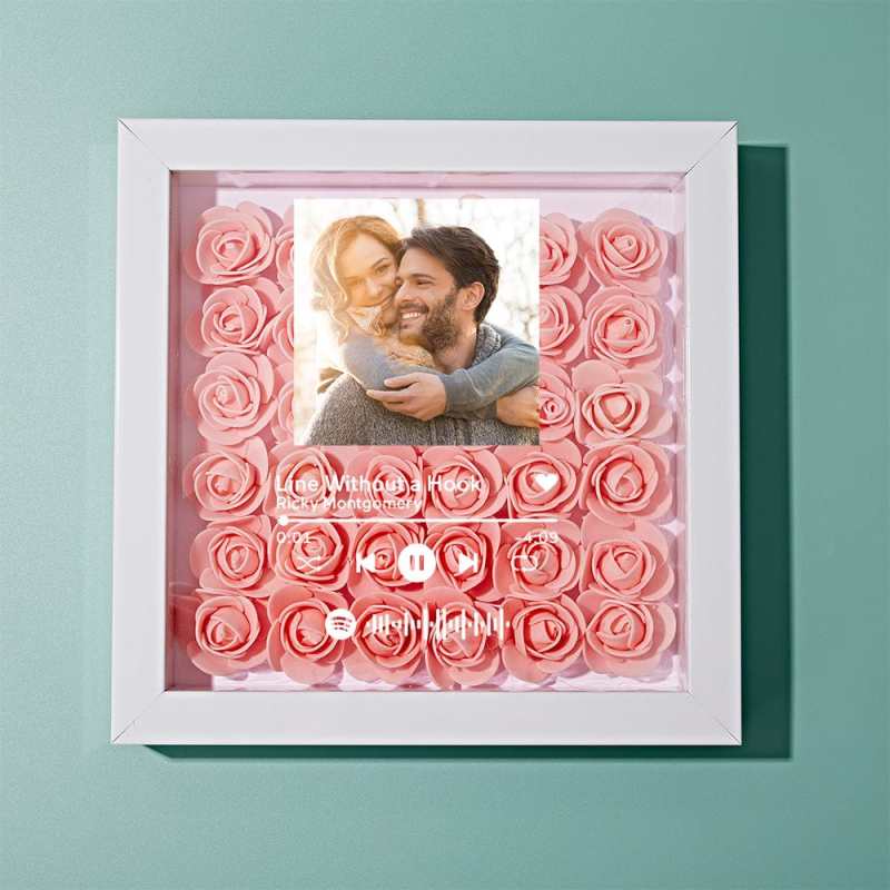 Custom Scannable Spotify Code Photo Music Flower Shadow Box Personalized Flower Shadowbox Frame Gift