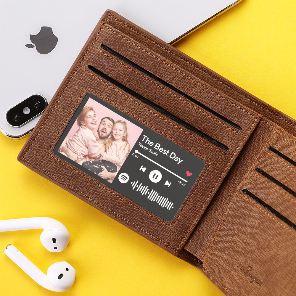 Please upload the song title, artist name and album cover or photo you want to add to the wallet insert card, and create a beautiful and unique gift for him to paste can be in your wallet and always with you. We're adding a Spotify code! Once you scan the code on Spotify, your song will start playing immediately.