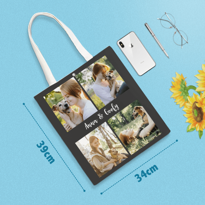 Custom Canvas Bag Photo Collage Tote Bag Gift For Pet Lovers