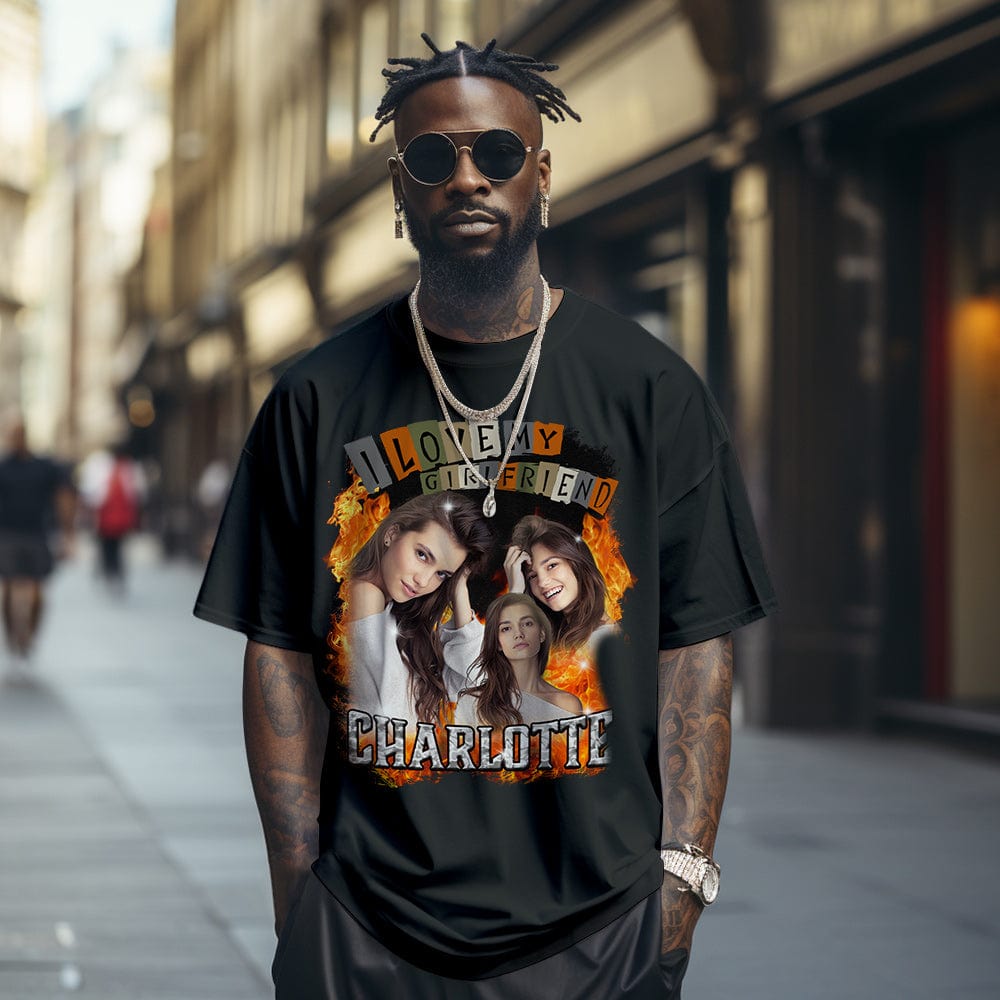 Custom Vintage Tee I Love My Girlfriend Shirt Personalized Name Shirt With Photo