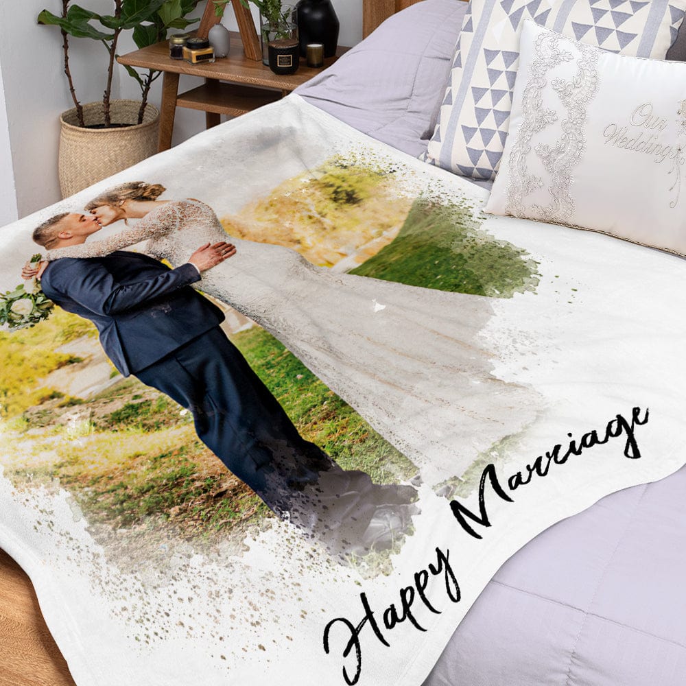 Custom Wedding Blanket Personalized Photo Blankets Wedding Gifts - Happy Marriage