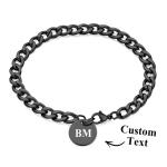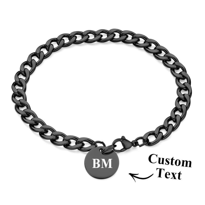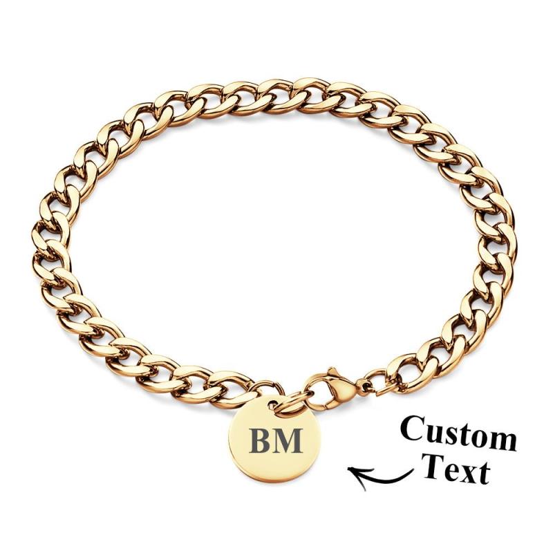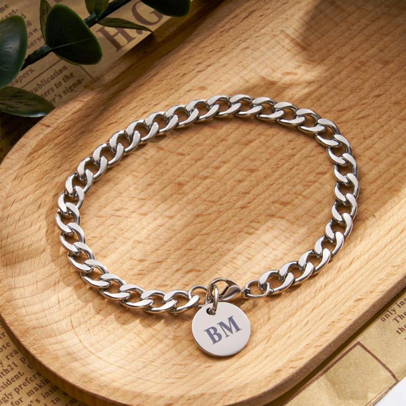 Engraved Initials Thick Cuban Chain Link Bracelet Stainless Steel Bracelet for Men