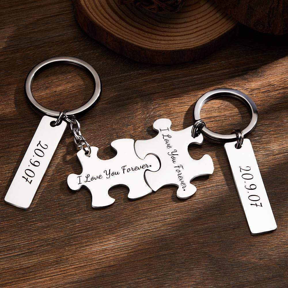 Engraved Keychain Custom Block Puzzle Keychain Couples Gifts Valentine's Day Gift