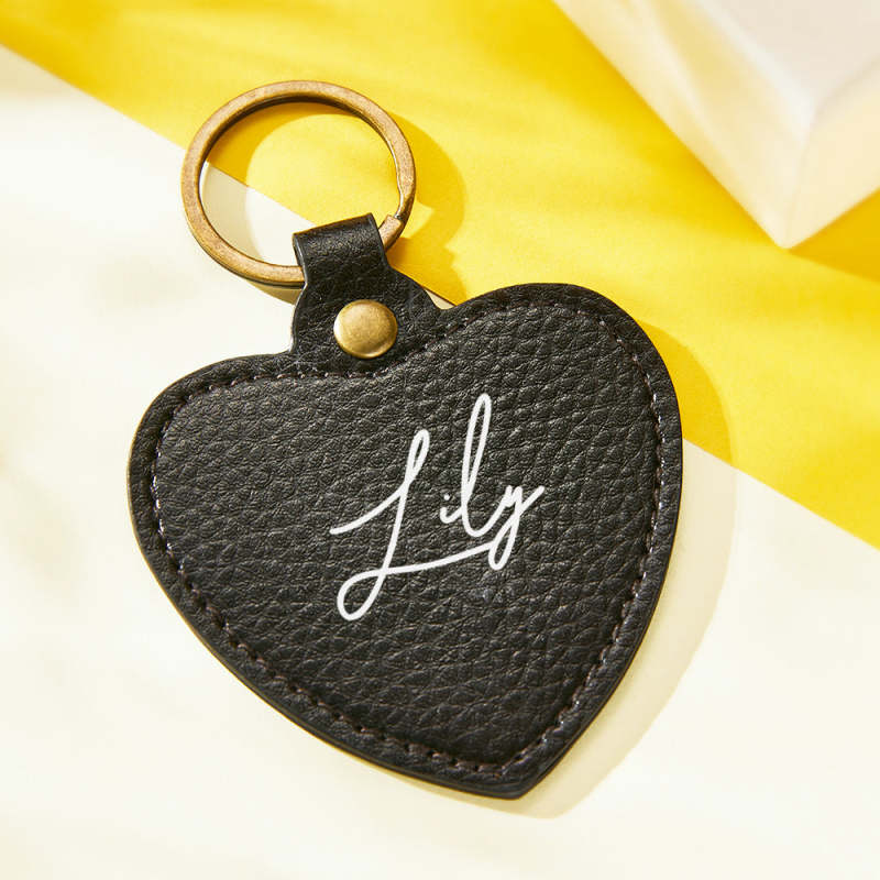 Engraved Keychain Leather Keychain Heart Shaped Gifts for Her