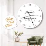 - This custom clock serves as a perfect gift for a new home gift. The high-quality printed wall clock will be an essential decoration of your home, office, or kitchen wall.