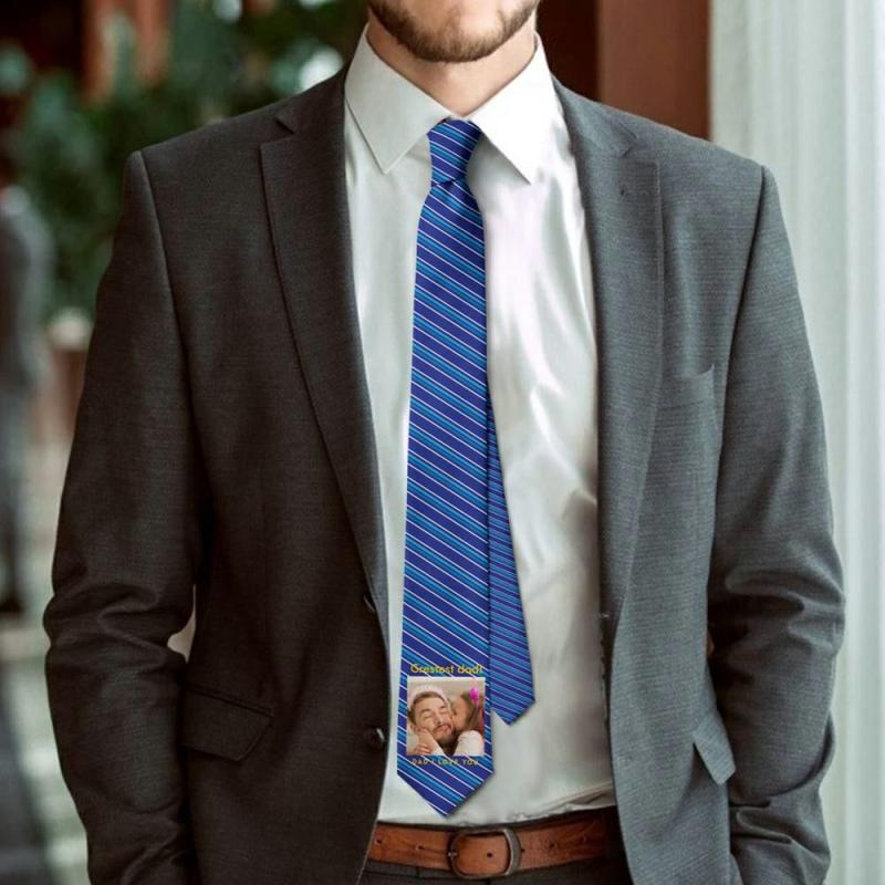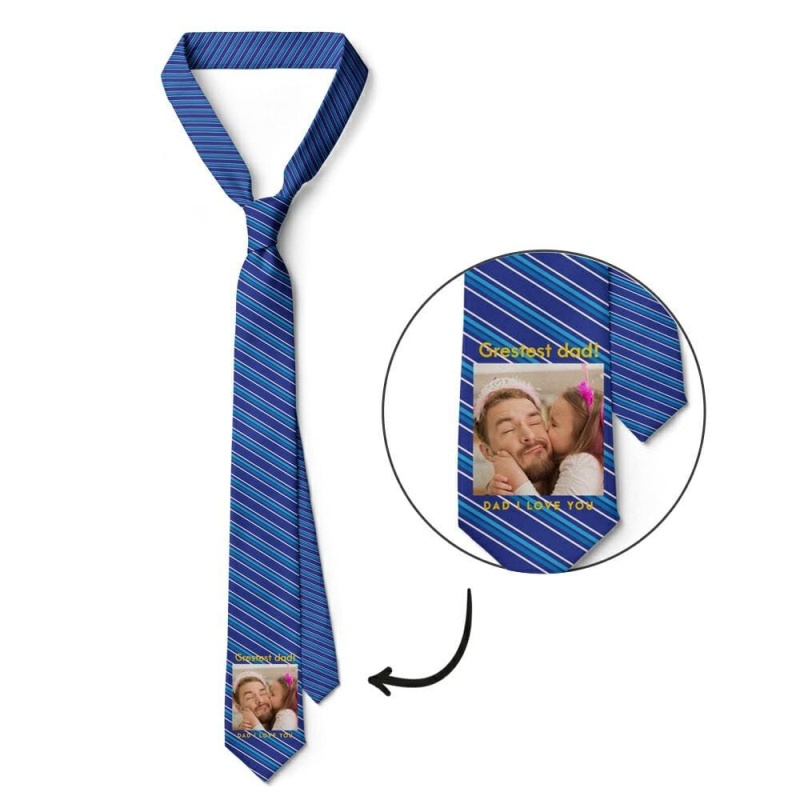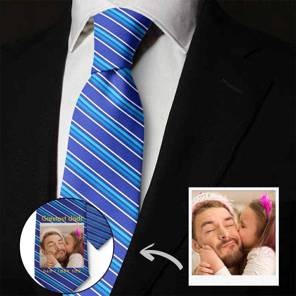 Father-in-law Gift Picture Tie with Blue Stripes - I Love You Dad