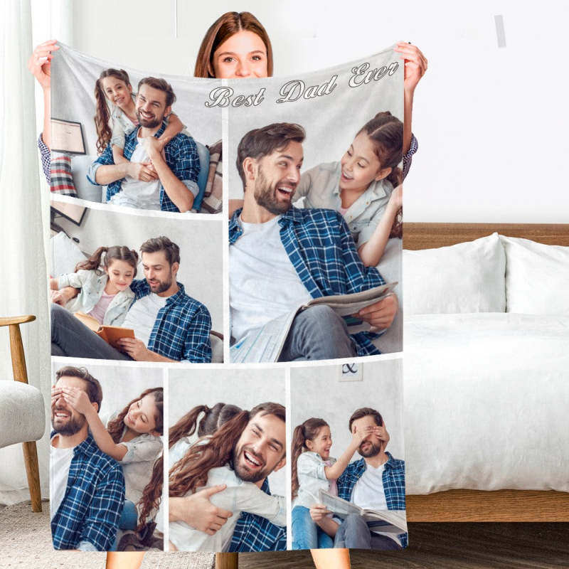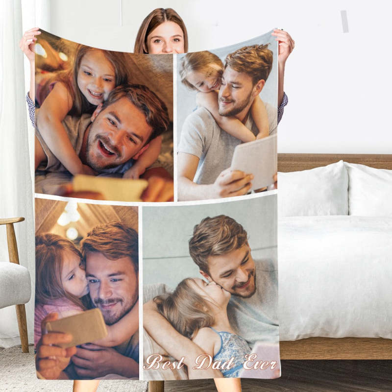 Father's Day Blankets Personalized Photo Collage Blanket Soft Flannel Gift for Dad - Heart
