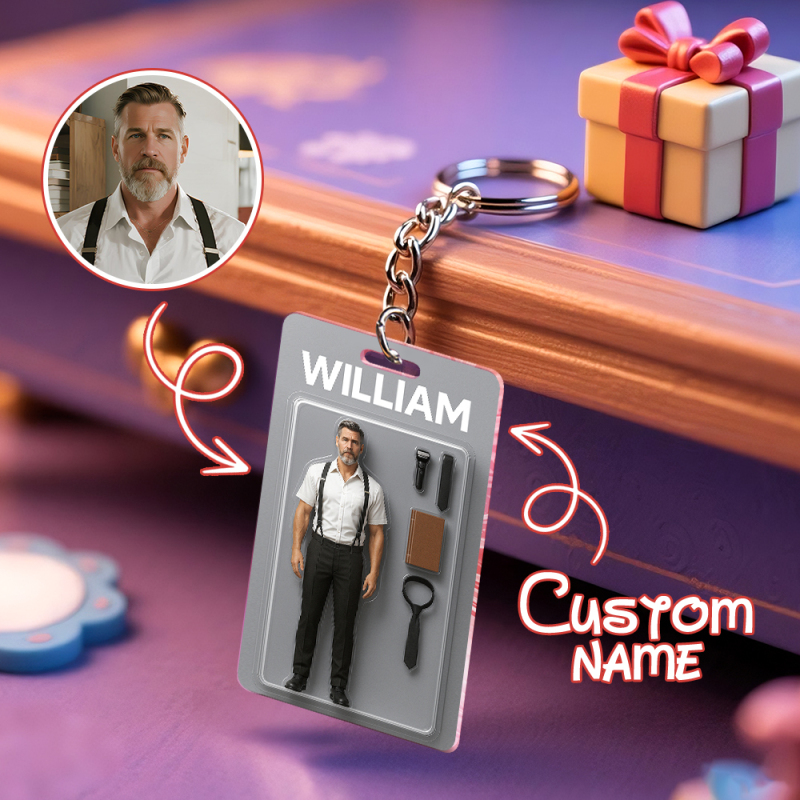 Fully Body Customizable Action Figure Pack Packaging Toy Box Style Art Gift Personalised 2D Printing Acrylic Keychain Gift for Him