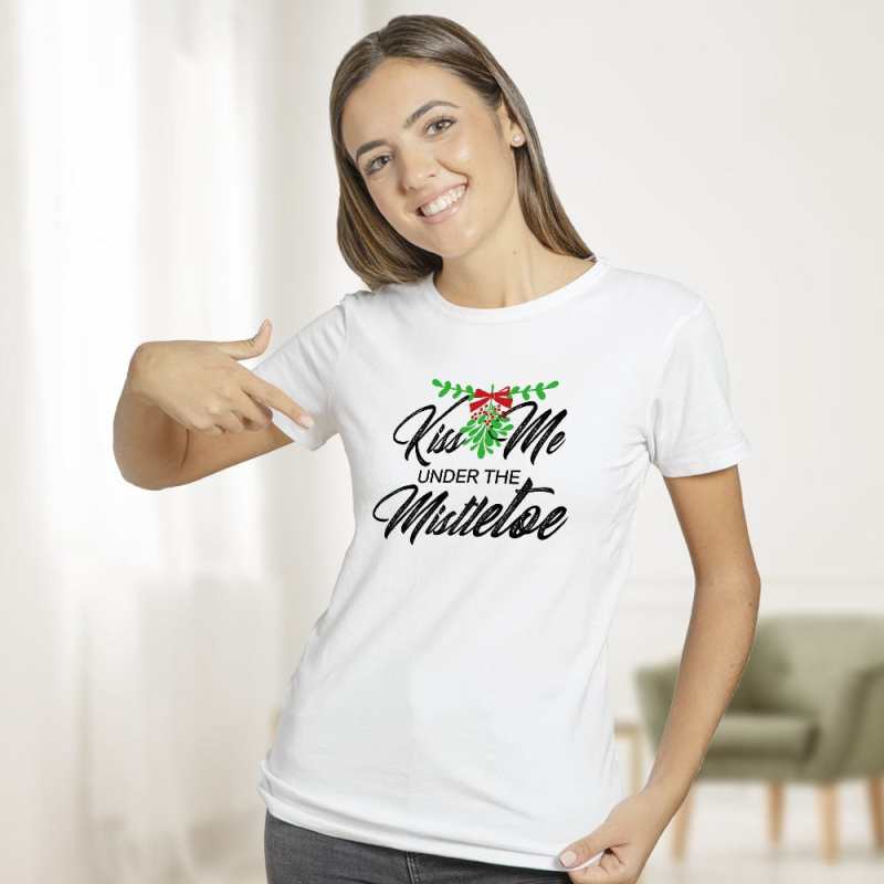 Funny mistletoe pattern printed on the front of the T-shirt. Our design team works hard to get a perfect production. Perfect christmas gift for your family, best friend, significant other, or even yourself!