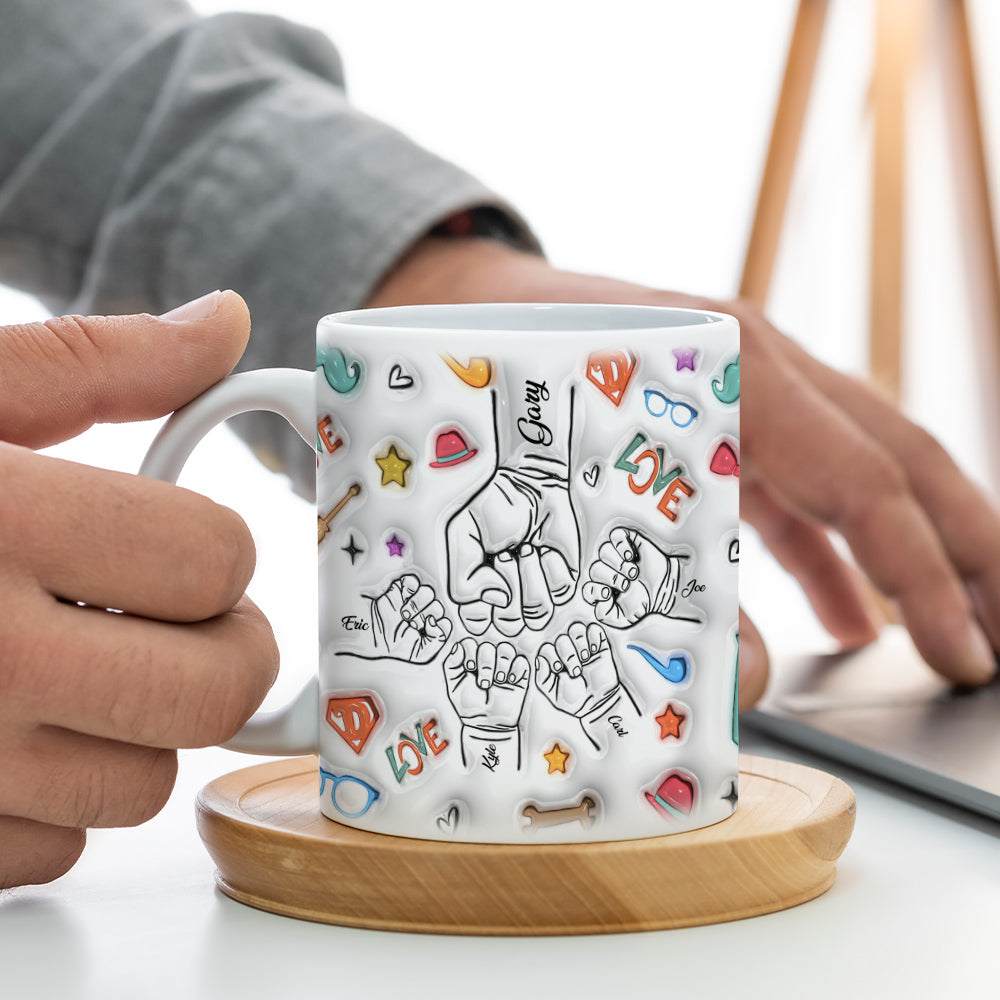 Show your love and appreciation for father or grandpa with a unique design that warms both the hands and the heart. This mug features a touching illustration of fist bump, a heartfelt tribute to the cherished bond between family members.
